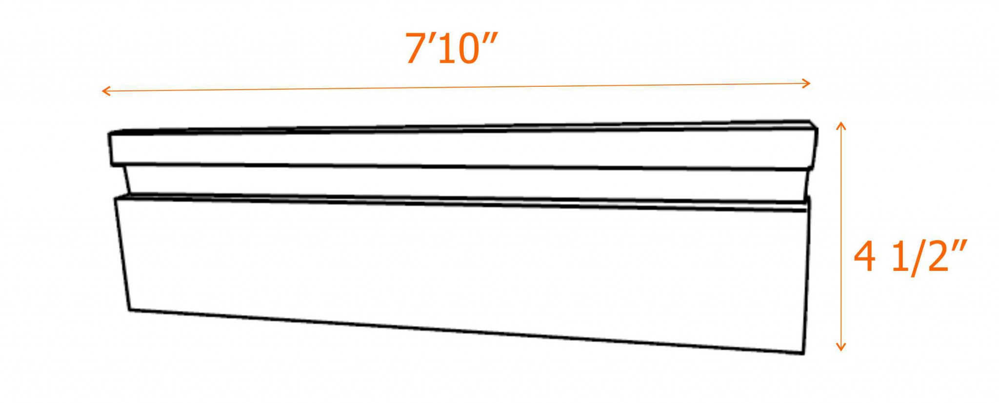 Our Bbd moldings are 7’10” l. x 4 ½” h x ¾” thick (2.40 mts l x 11,5 cm h x 18 mm thick). They come into boxes containing 10 pieces each, enough to cover 78 lineal feet.